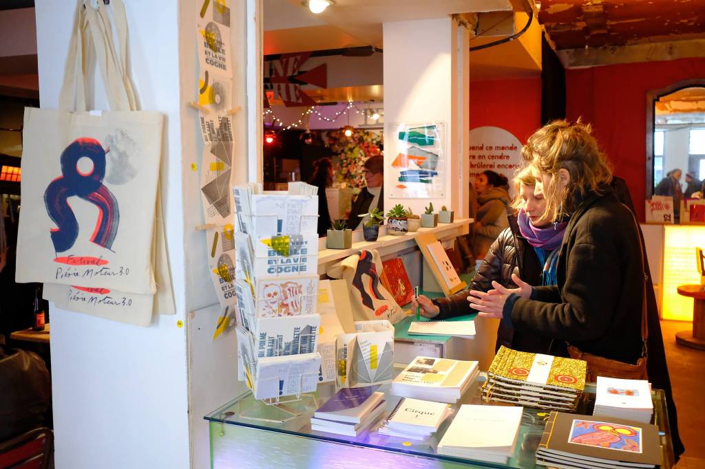 C. Nicolle et H. Fontaine : C’est un autre parti pris du festival Poésie moteur : faire des liens, mutualiser les savoir-faire. Nous travaillons avec la Ville, la Maison de la Culture, les écoles (beaux-arts et école technique), une brasserie locale, Le Bierodrome, avec laquelle nous brassons une bière-poème. Puis la librairie Chantelivre, le marché de petits producteurs… Au fil des ans nous développons et renforçons ces liens. Et notre premier partenaire c’est Vitrine Fraîche et notre ami Bertrand Bostaille qui investit des lieux inoccupés et y propose rencontres, expositions et concerts durant toute l’année.