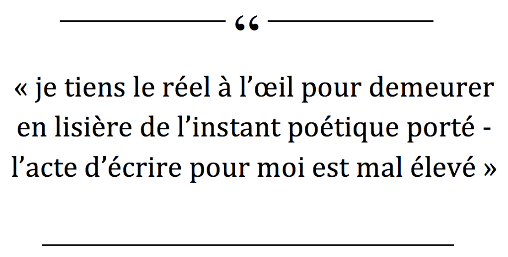 je tiens le réel à l’œil pour demeurer en lisière de l’instant poétique porté –