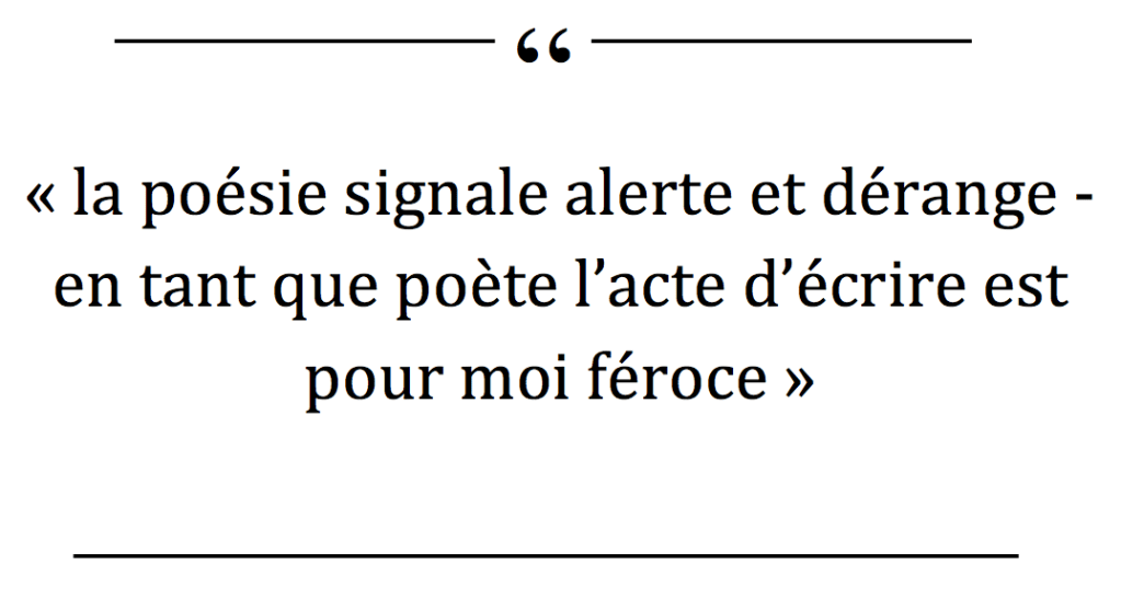 Rencontre avec une poétesse pour qui l’acte d’écrire se veut viscéralement féroce.