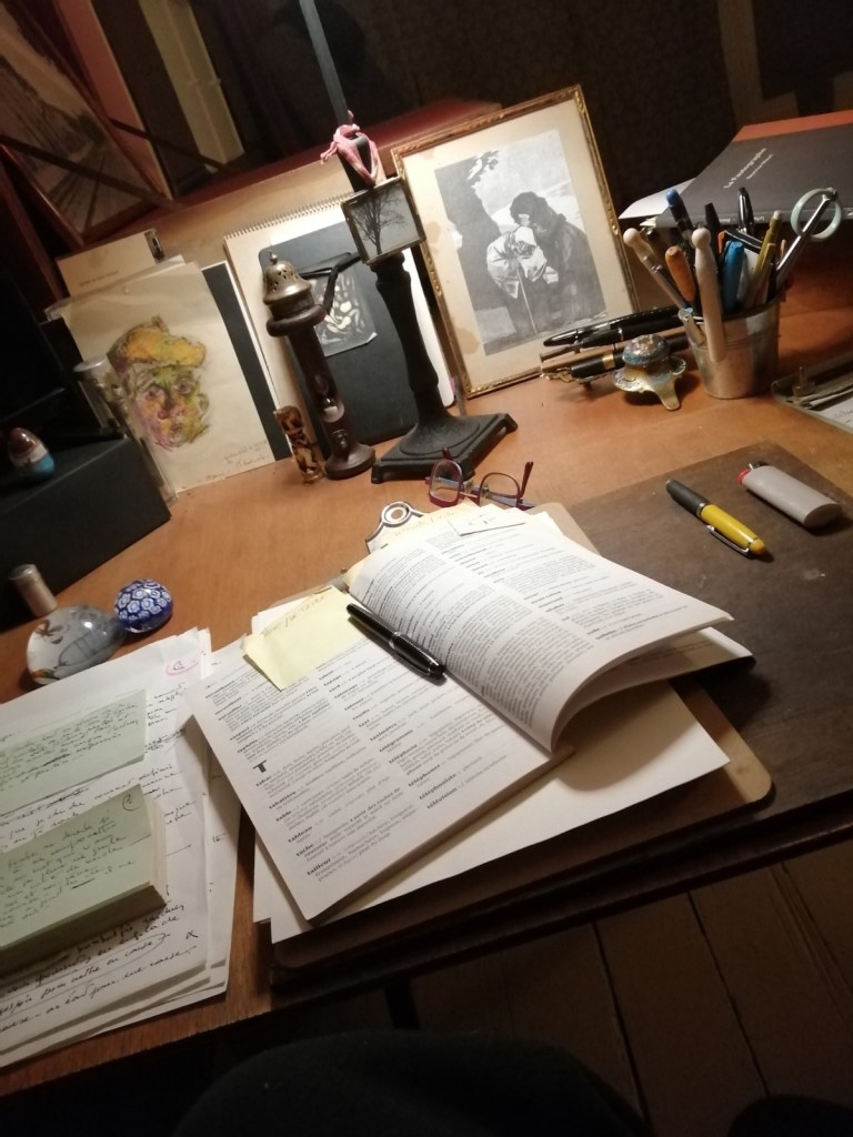 je ne peux également pas me passer de musique lorsque j’écris – je fais une sélection selon mon récit – il peut y avoir / Léo Ferré / le Fado / Bach / Mozart/ Morton Feldman / Mahler… etc. / et Eddy de Pretto / Christine and the Queens/ Christophe / Bashung etc.