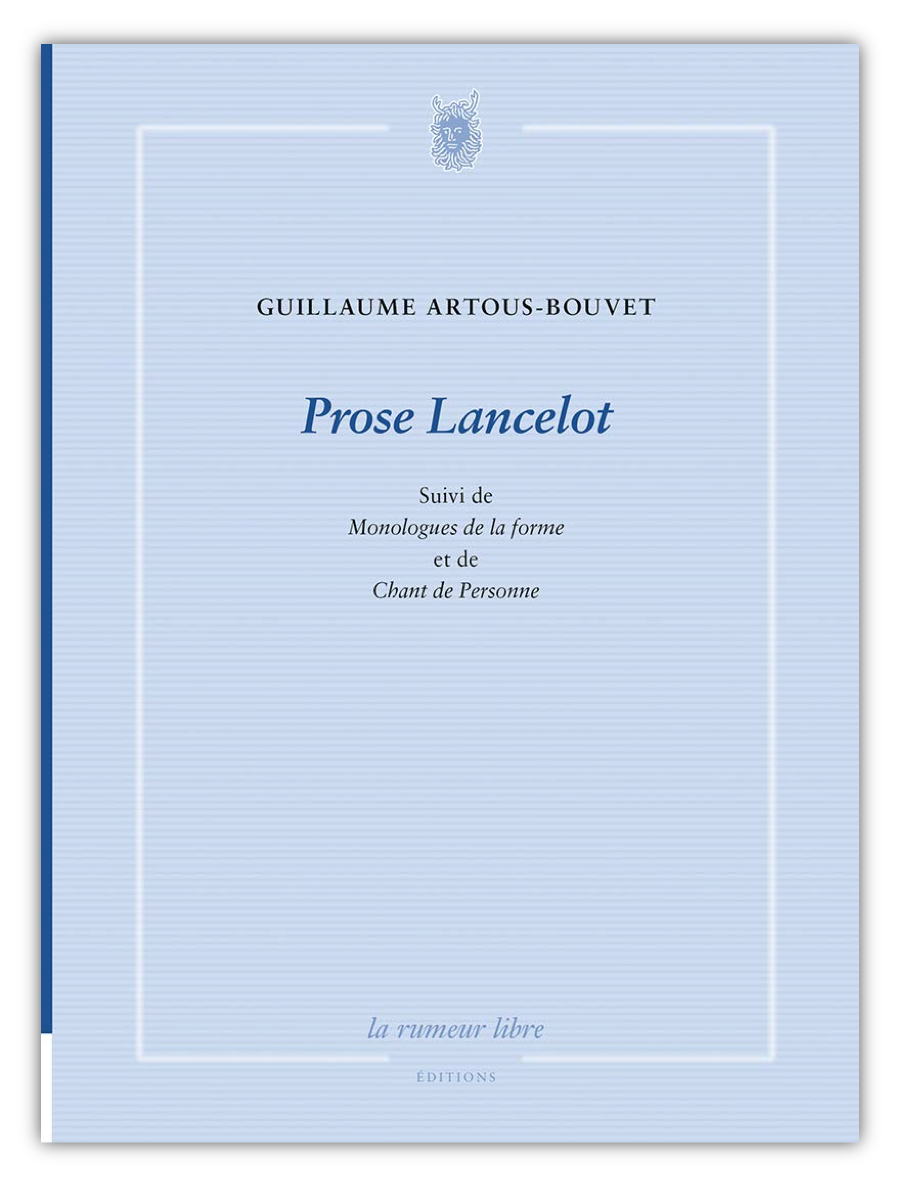 Guillaume Artous-Bouvet, Prose Lancelot suivi de Monologues de la forme et de Chant de personne, collection Plupart du temps, éditions La rumeur libre, septembre 2020