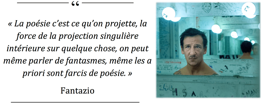 Fantazio : La musique peut aussi toute seule être plus poétique qu’un texte, la poésie c’est ce qu’on projette, la force de la projection singulière intérieure sur quelque chose, on peut même parler de fantasmes, de quiproquo, d’idées fausses, même les a priori sont farcis de poésie. Donc elle n’est pas spécialement contenue dans un texte, je crois, plus que dans une simple situation, spectaculaire, publique ou non.