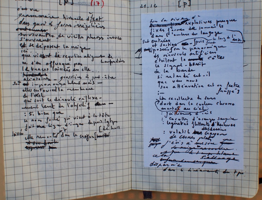 Aussi, pour répondre à votre question, je peux dire que : chaque projet induit un régime d’écriture spécifique qui va se vérifier et se déployer à mesure. La contrainte y est invisibilisée, discrète, ou plus manifeste, c’est selon. On peut ainsi entendre sous le mot « contrainte » ce que chaque projet déploie, et de différentes façons penser ou étendre le mot de « contrainte » à ceux, voisins, de « dispositif », de « montage », de « processus »