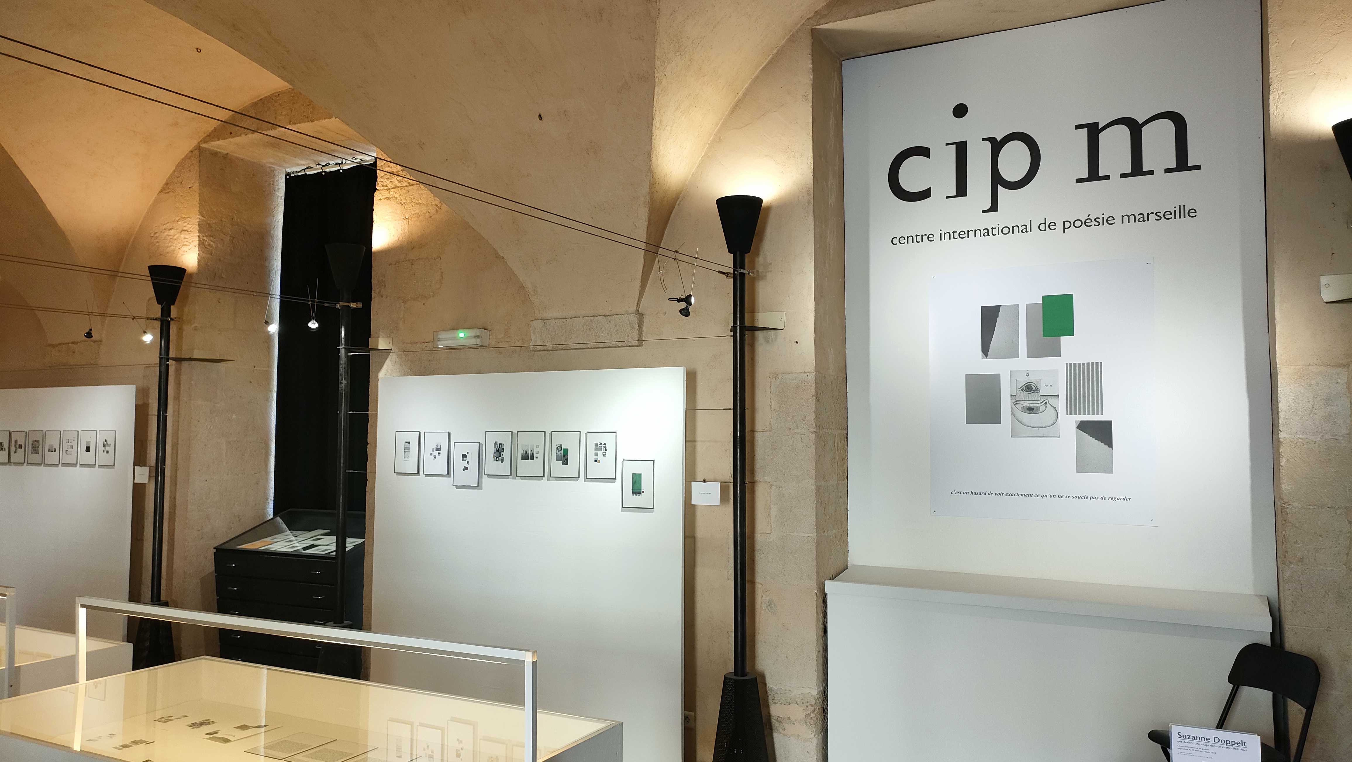 L’exposition que devient une image dans un champ électrique, que le Centre international de la poésie de Marseille consacre à Suzanne Doppelt, est un redéploiement de ses photographies hors de ses livres, un réagencement documenté à l’échelle d’un lieu, un dispositif pour redécouvrir et explorer la fabrique singulière d’images liée à l’écriture poétique de cette autrice dont les livres ont paru essentiellement aux éditions P.O.L.